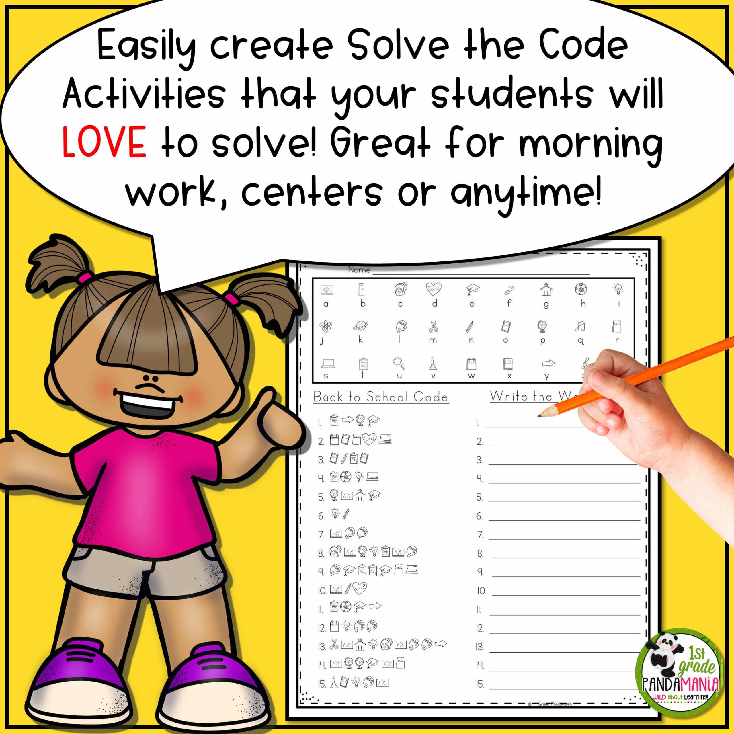 - SOLVE THE CODE 15 Words #1 Feelings Code, Geometry Code, Pumpkin Code, Holiday Code, Flower Code, Number Code, First Sound Code
