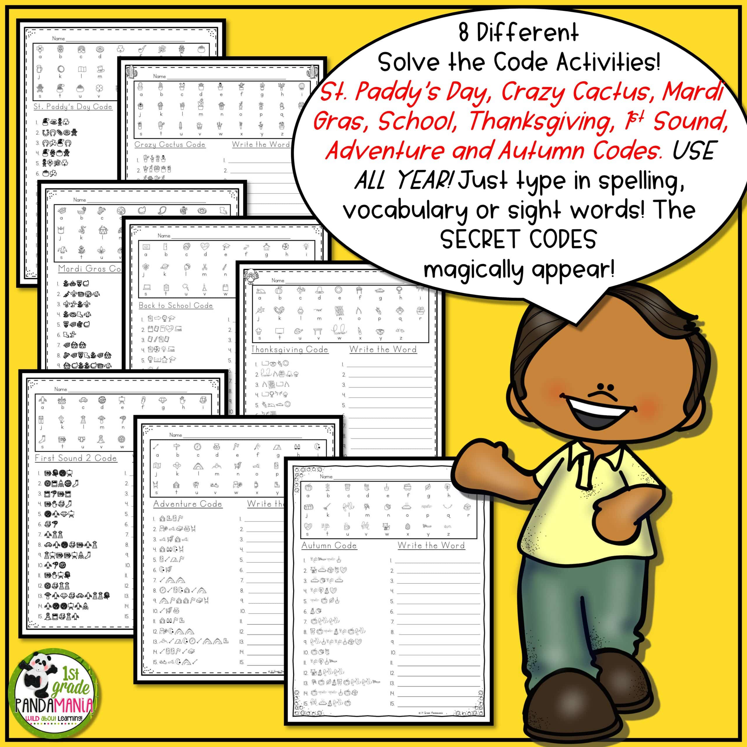 - SOLVE THE CODE #4 St. Paddy’s Day Code, Crazy Cactus Code, Mardi Gras Code, Back to School Code, Thanksgiving Code, First Sound Code, Adventure Code, Autumn Code