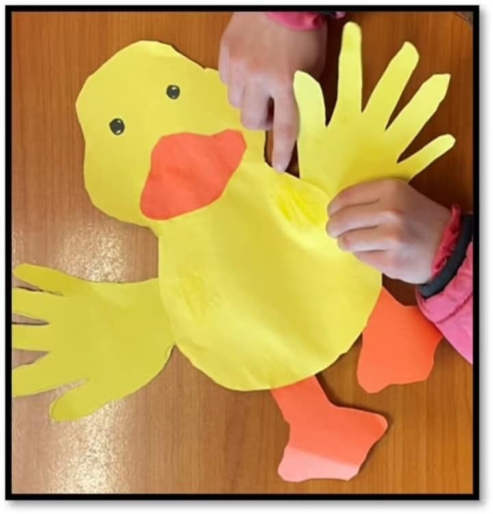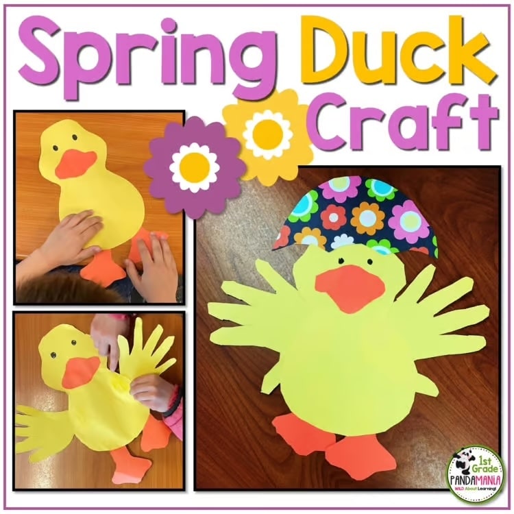 This simple spring craft activity is a duck with umbrella Easter craft is perfect in March, April or May for prek, kindergarten, 1st and 2nd grades for spring, Easter, weather, or precipitation units! Students cut out, assemble and glue the duck and umbrella top together and then trace and glue hands for the duck wings. The cute craft can be displayed on a spring bulletin board. This activity is one of our students’ favorites, and I’m proud for your students to enjoy it as well!