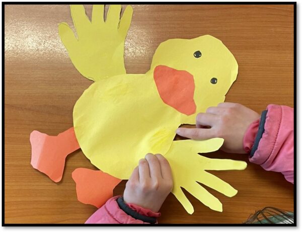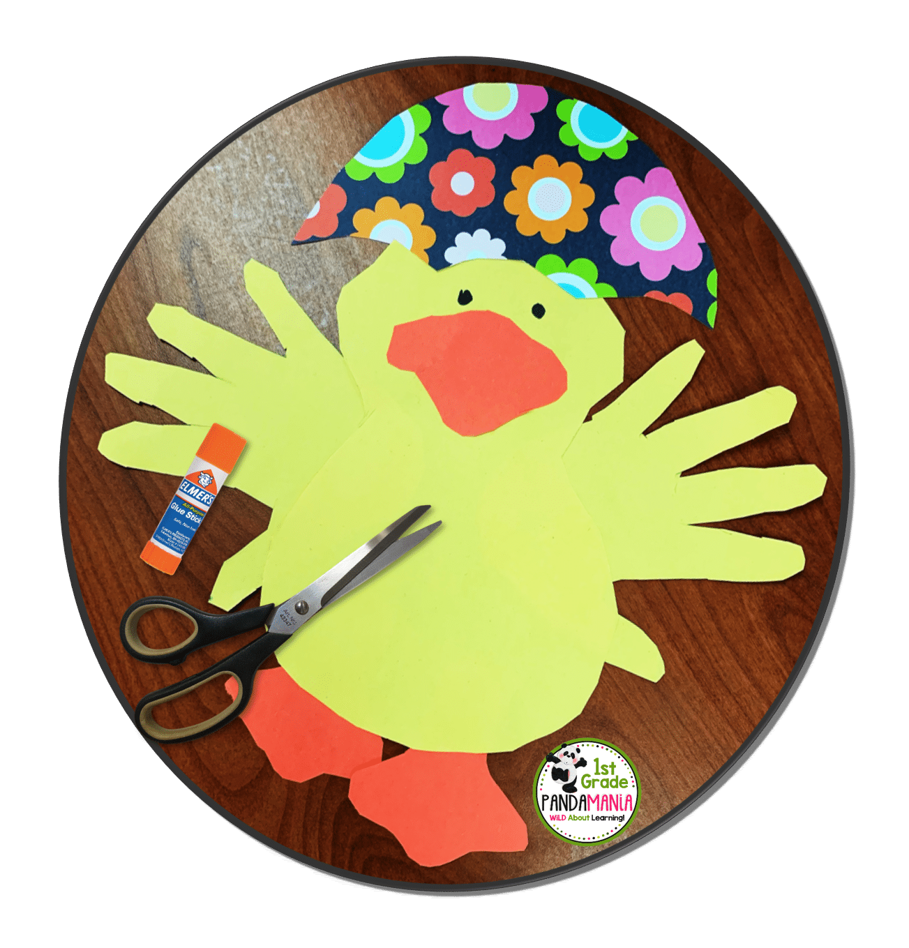 Students cut out, assemble and glue the duck and umbrella top together and then trace and glue hands for the duck wings. The cute This Spring Craft for Kindergarten and 1st Grade craft can be displayed on a spring bulletin board. This spring craft for kindergarten and 1st grade activity is one of our students’ favorites, and I’m proud for your students to enjoy it as well!