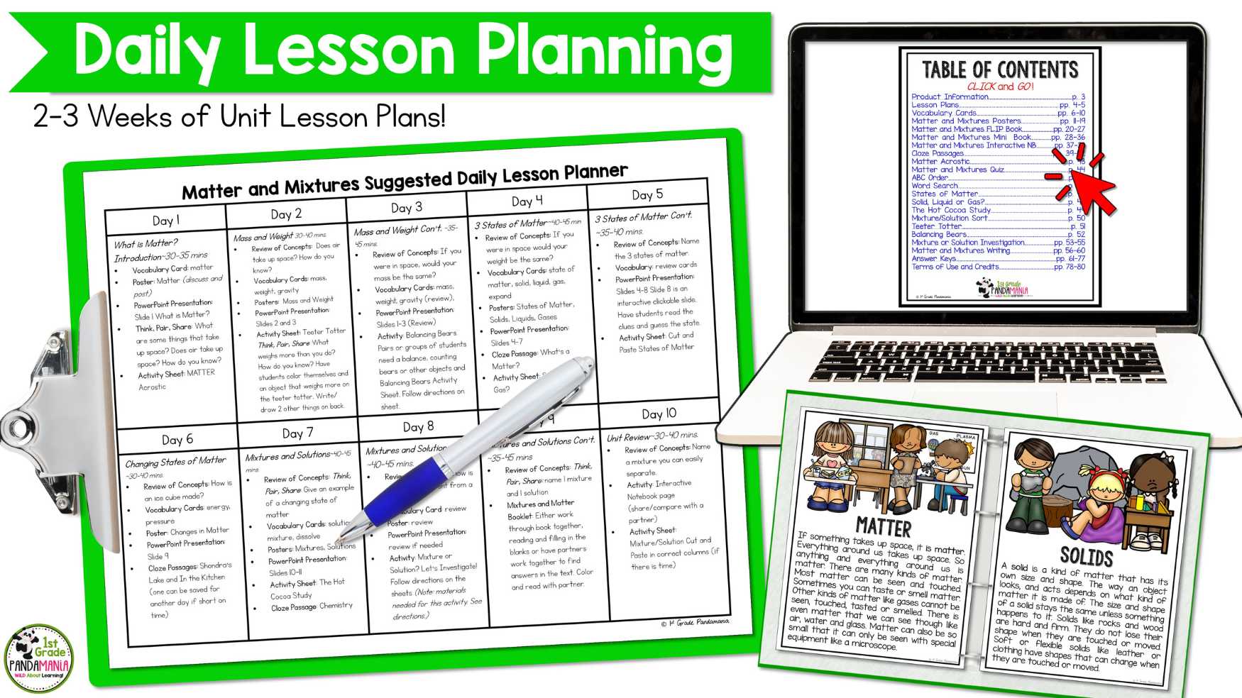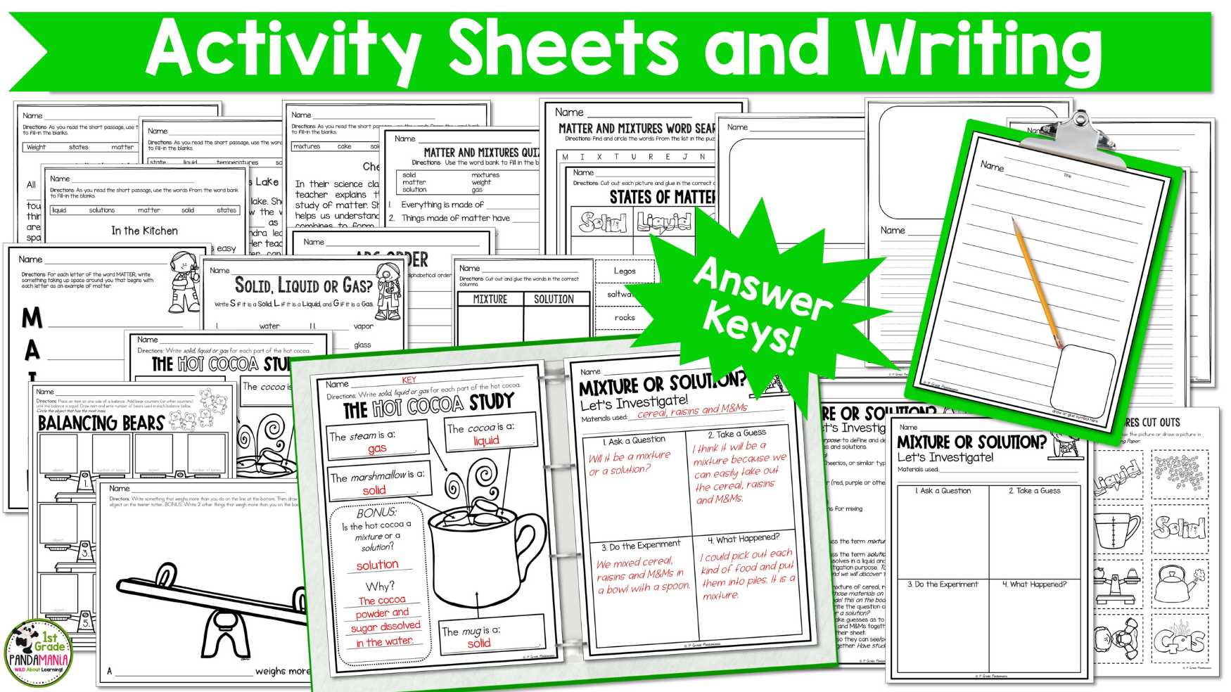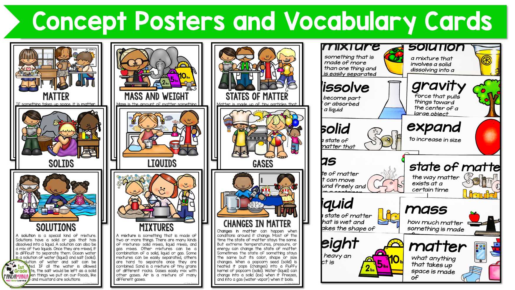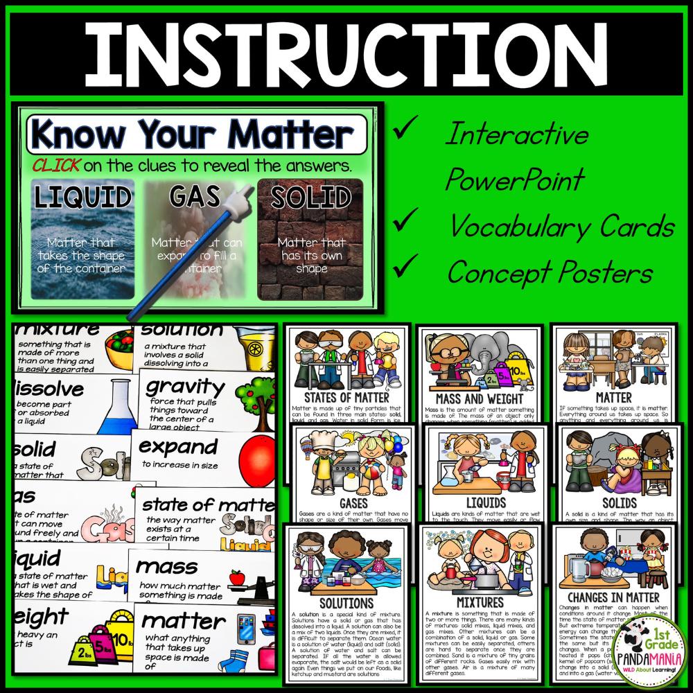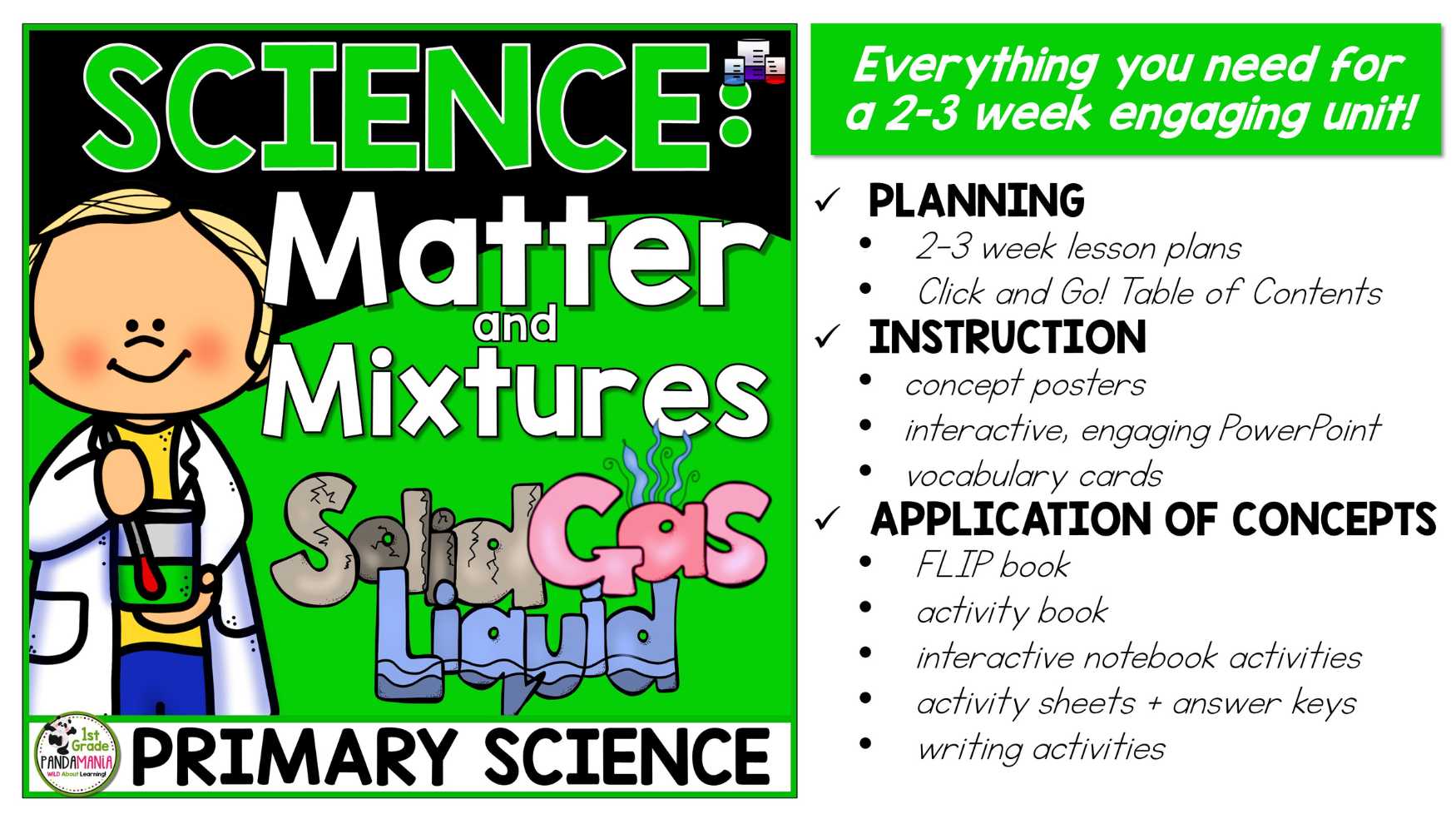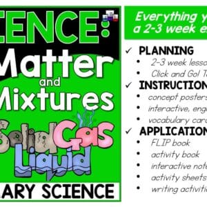 Students will learn about simple matter, mixtures, and other simple chemistry concepts including states of matter, solids, liquids, gases, mass and weight, mixtures and solutions, changes in states of matter and so much more! The packet is organized in a low prep and easy to use printable format.