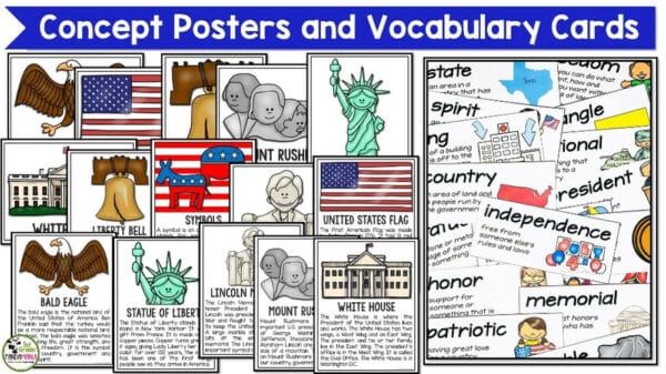 This comprehensive American Symbols packet is aligned with the national social studies standards. It includes the patriotic symbols of the Liberty Bell, US Flag, bald eagle, White House, Mount Rushmore, and Statue of Liberty, and Lincoln Memorial