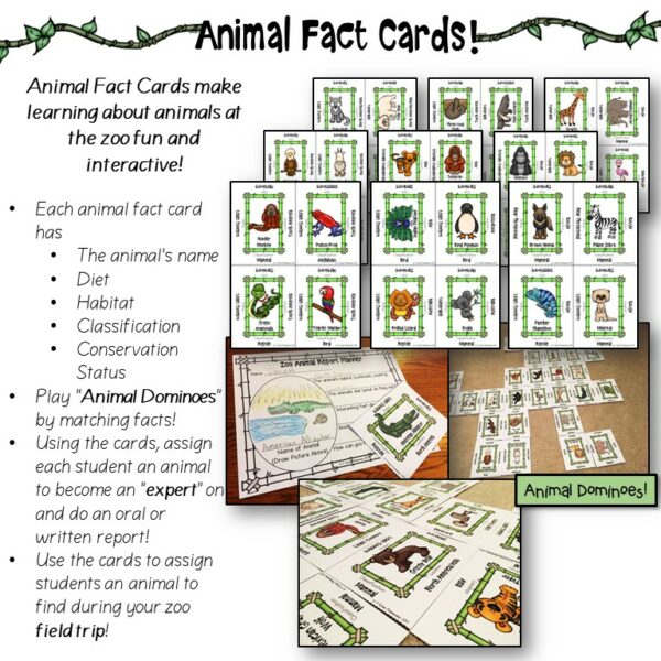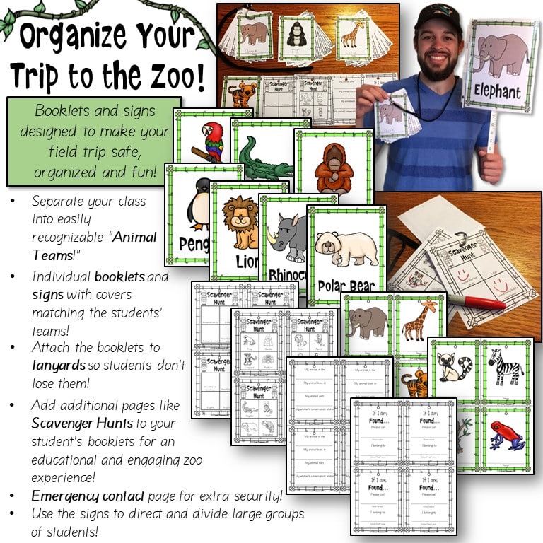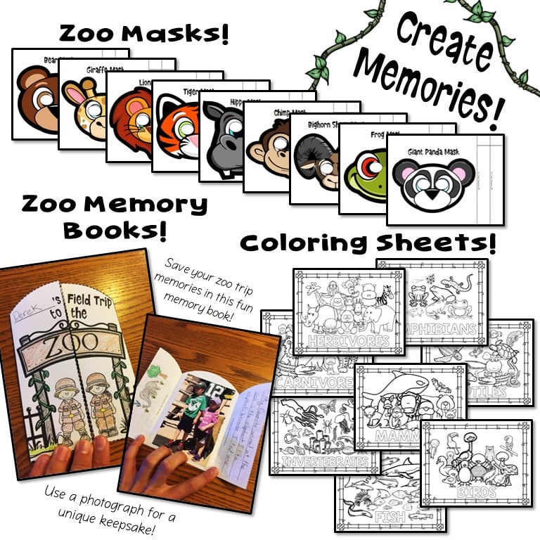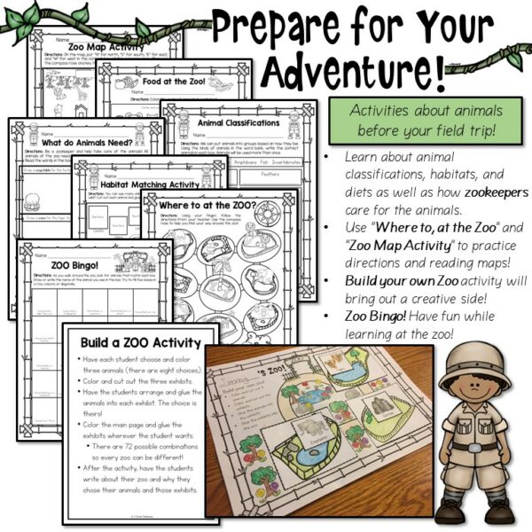 You are set with activities before, during and after your zoo visit with this 189 page activity pack. Prepare with Animal Fact Cards as well as animal classification, diet, and habitat activities. Inspire your students with the Build a Zoo activity. Use the Zoo Masks for a fun and interactive craft. On zoo day, use the Zoo Field Trip Booklets and Signs to organize your students into groups while making the visit engaging and fun for everyone with scavenger hunts. After your trip, construct a Zoo Memory Book with room for a photograph to remember the day.
