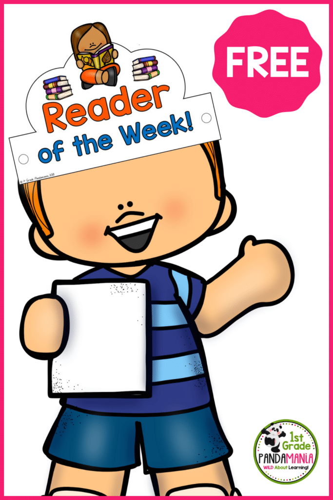 If you teach 1st grade, you know how easy (and how important) it is to make them feel special. That’s why I’ve also included a fun colorful Reader of the Week crown and an ink-saving black and white version that students can color. These can be worn on the day they read to the class. How fun and easy peasy is that?
