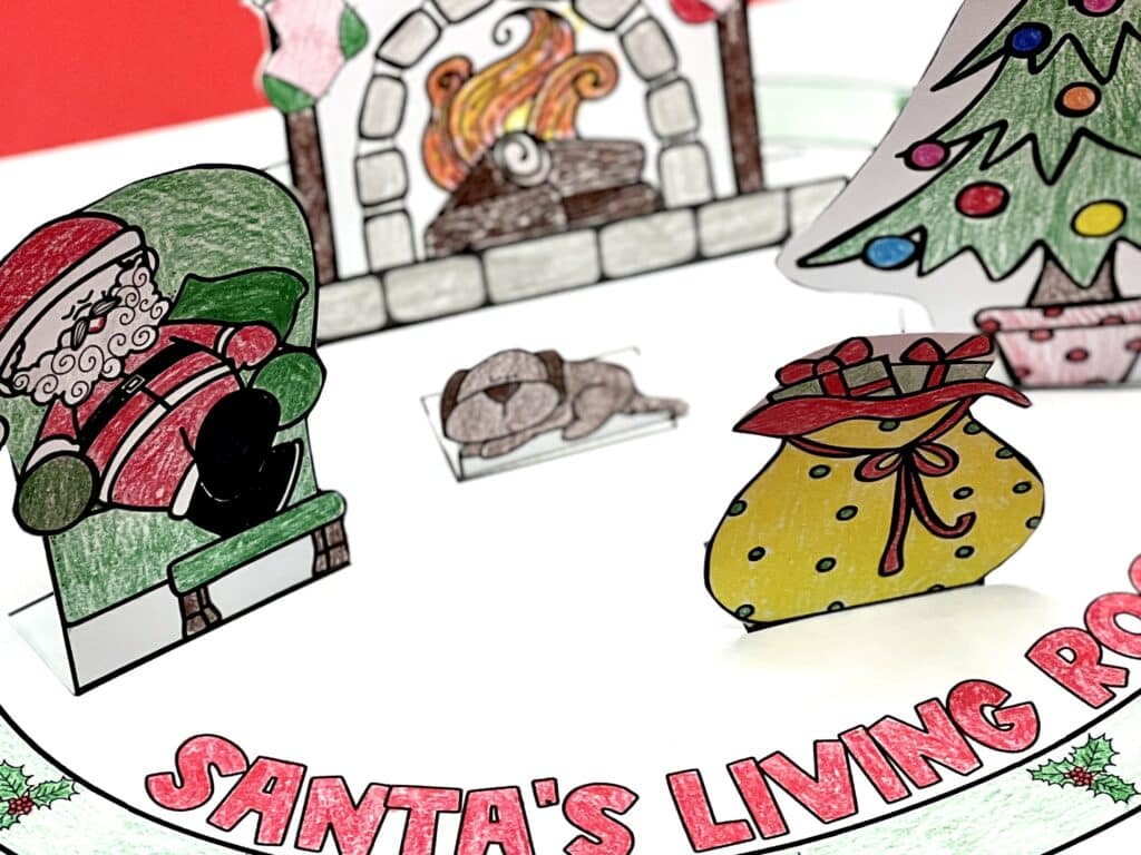 Our 1st graders love the way they can make Santa’s living room come to life with the pop-up images that they color, cut, and attach in their places!